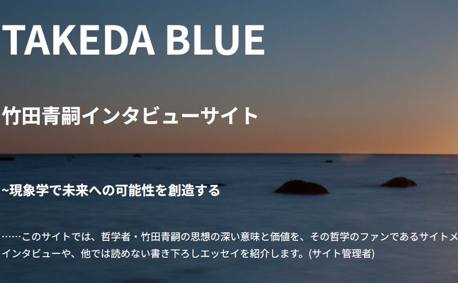 このサイトでは哲学者・竹田青嗣の最新情報を、姉妹サイト「Takeda Blue」「Seiji TAKEDA ーRenaissance in Philosophy」と連携して発信していきます。(サイト管理者)